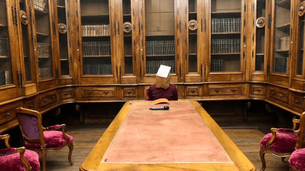 Le public a rendez-vous avec le directeur et doit se frayer un chemin dans le labyrinthe qui mène jusqu’à lui. Il faudra exorciser nos peurs ancestrales et modernes en s’appuyant sur les mythes et légendes associés aux espaces que nous traverserons. Pour dire que la peur est un jeu d’enfant et que ceux qui en usent autrement sont des porteurs de mort.